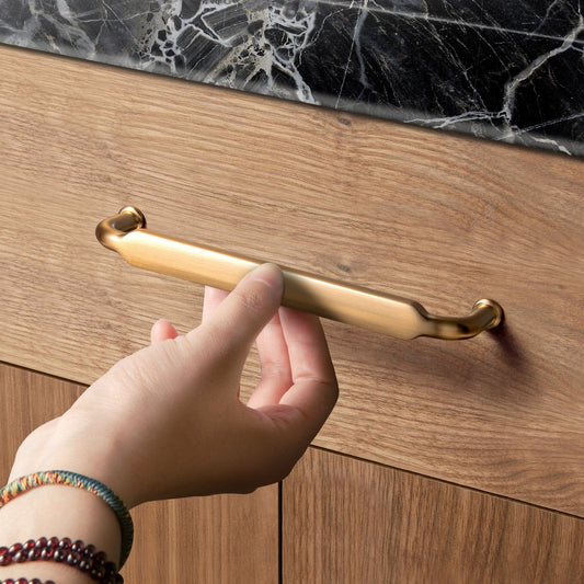 Curved Vintage Brass Drawer Handles Antique Bronze Solid Cabinet Pulls 6 pack