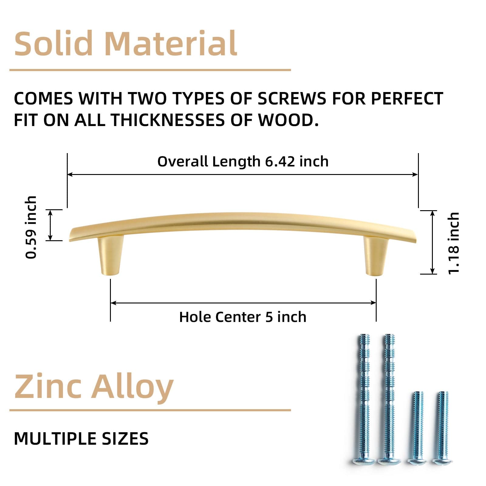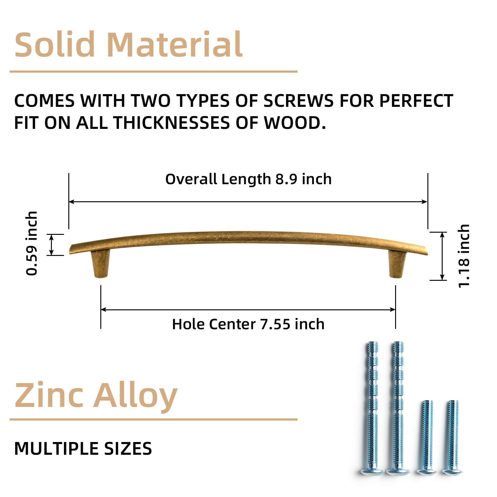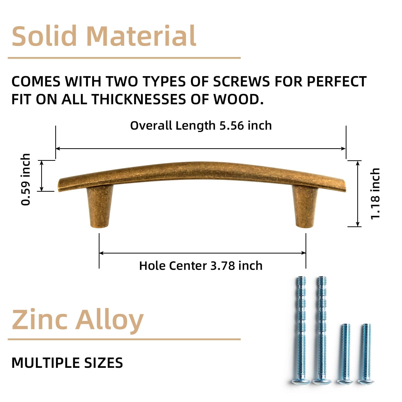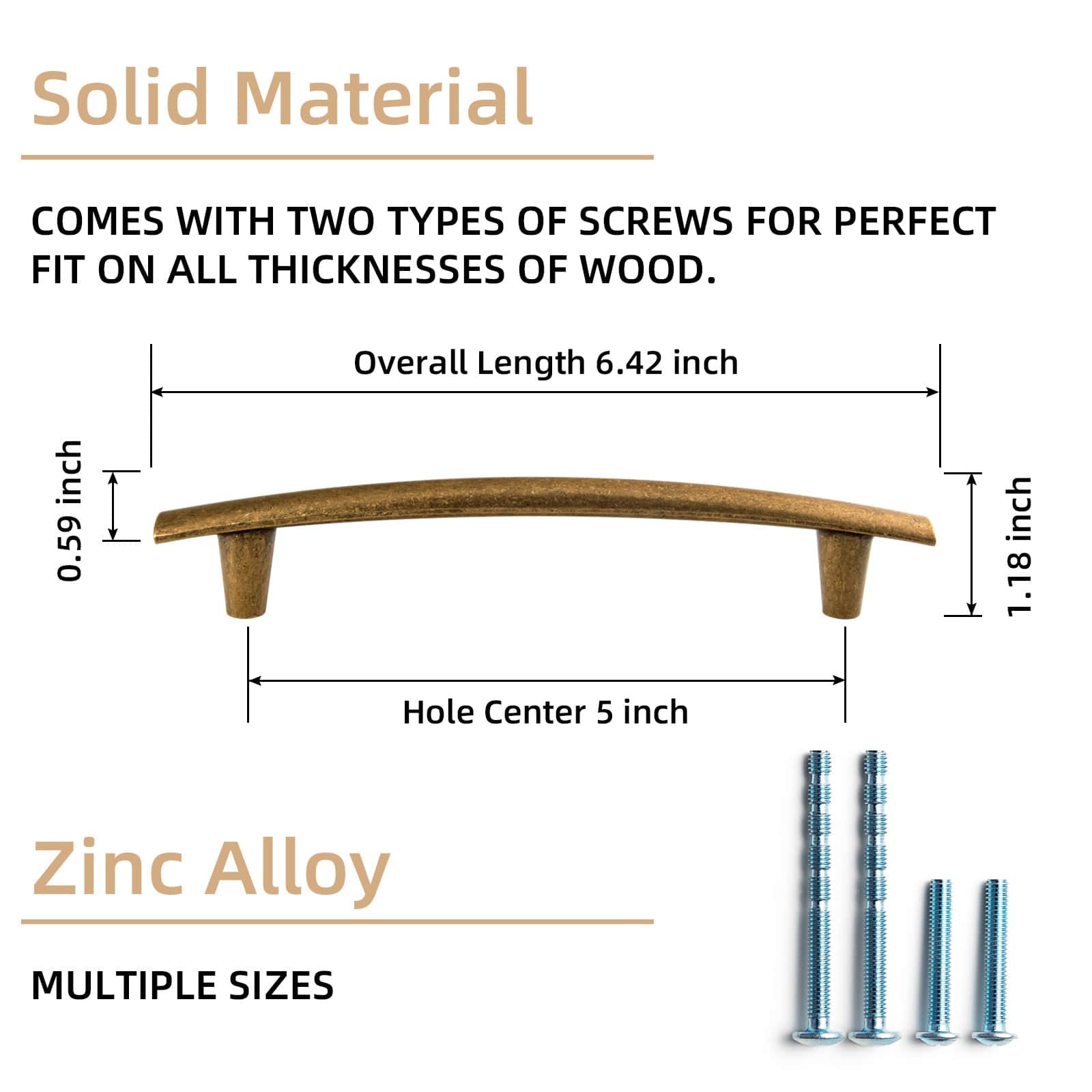 Curved Vintage Brass Drawer Handles Antique Bronze Solid Cabinet Pulls 6 pack