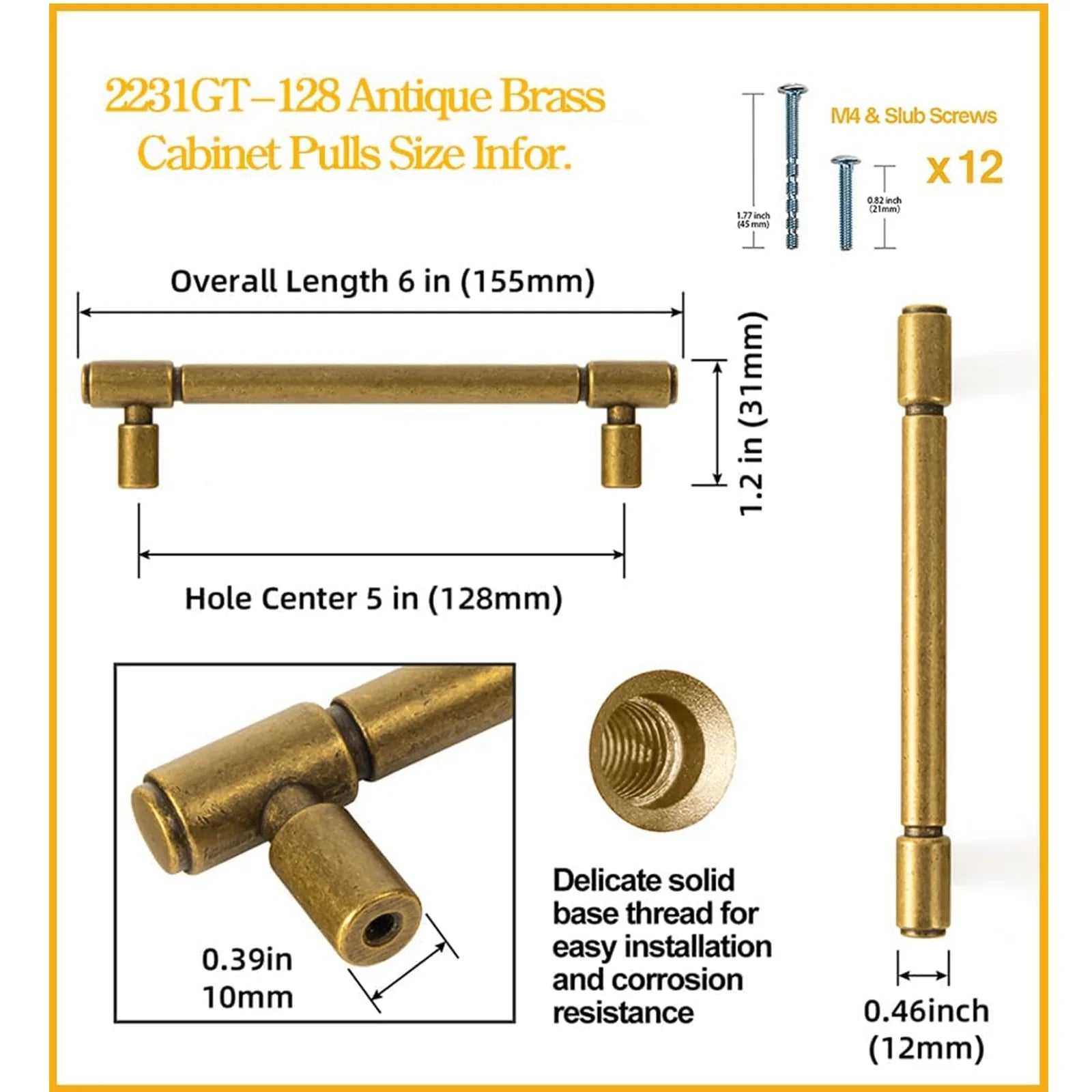Retro Bar Handle for Dresser Cupboard Vintage Bronze Ancient Pull 6 Pack