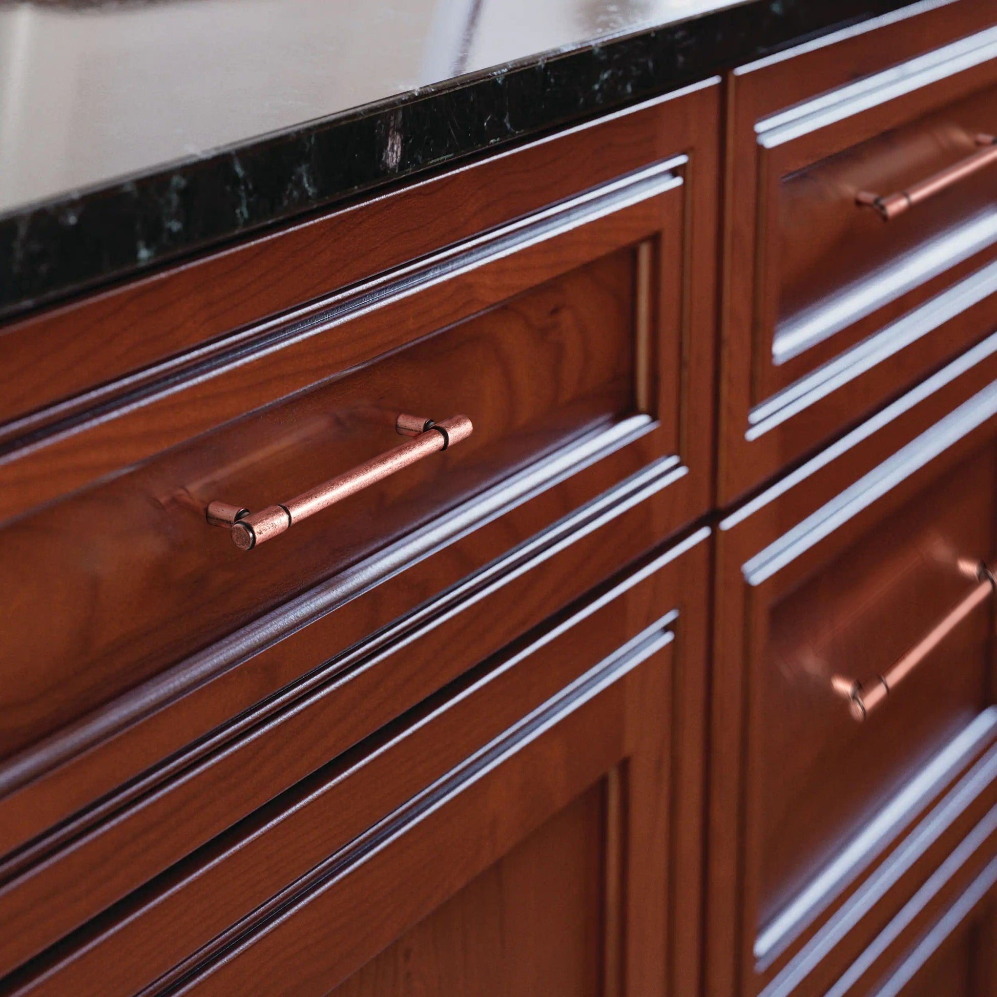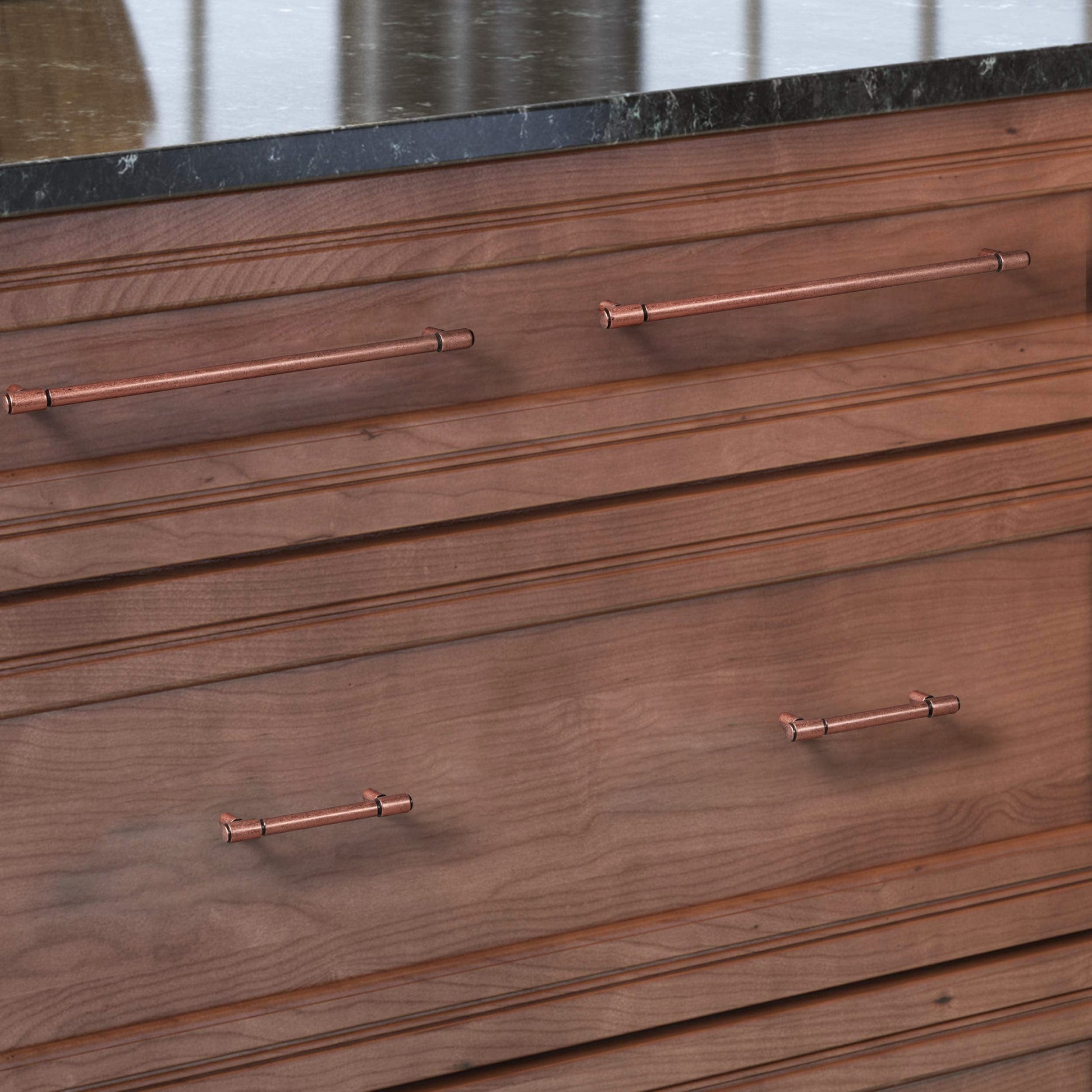 Upgrade your furniture with these Retro Bar Handles. Crafted with an Antique Copper Ancient Pull, these handles will complete any dresser cupboard. Available in a multitude of sizes, these handles are a perfect way to complete any antique look.